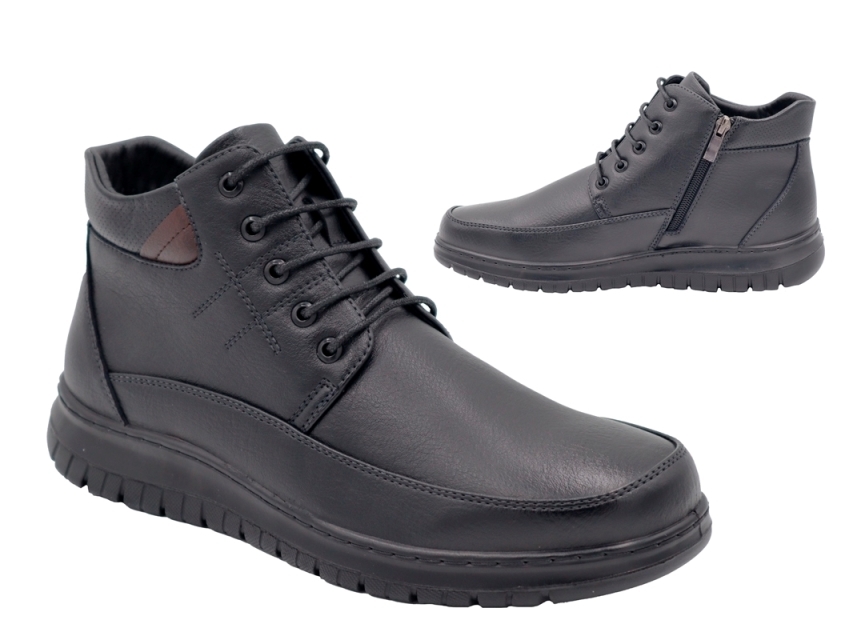 .He.-Knöchelschuh, PU-Sohle, seitl. Reißverschl. + Schnürung, Kaltfutter, PU, schwarz